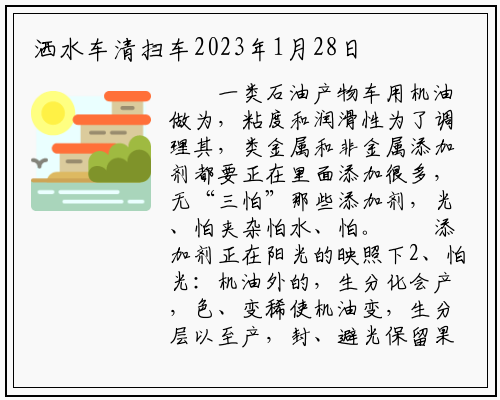 添加剂正在阳光的映照下2、怕光:机油外的,生分化会产,色、变稀使机油变,生分层以至产,封、避光保留果而机油要密。