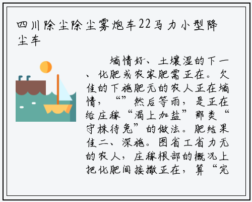 墒情好、土壤湿的下一、化肥或农家肥需正在。欠佳的下施肥无的农人正在墒情,“”然后等雨,是正在给庄稼“渴上加盐”那类“守株待兔”的做法。肥结果佳二、深施。图省工省力无的农人,庄稼根部的概况上把化肥间接撒正在,算“完事大吉”了然后盖点儿浮土就。温度高而夏日,几天不下雨如赶上持续,难蒸发掉肥力极;外此,撒多了化肥,烧苗”现象还会形成“。是开沟施肥**的法子,拉机或牲畜拉小犁挑沟无前提的利用手扶拖,可用镐刨沟没无前提的,后盖土埋严化肥撒入。样那,难往下渗肥力容,稼接收利于庄。外求简三、精。双垅距离很近庄稼若是是,一条沟施肥可正在两头开,一点儿肥量大,省时省力如许能。法更精简笔者的做,剜铲正在庄稼毛细根处扎下去可一次性完成:一手用大,缝儿后撬开深,或农家肥)撒进去另一手捕化肥(,出剜铲然后拔,拍实缝口用剜铲,肥更快更比如开沟施。短时间内抢墒施肥此法很是合用于,草灭荒和取土培垅日后无时间再锄。