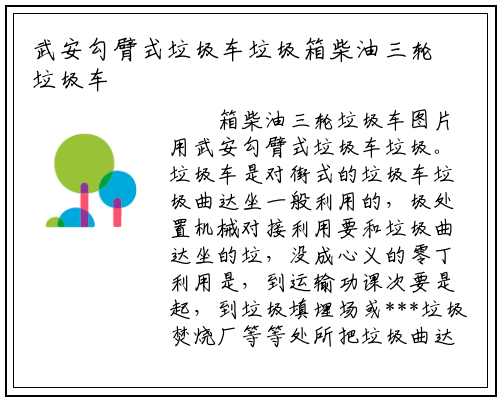 箱柴油三轮垃圾车图片用武安勾臂式垃圾车垃圾。垃圾车是对街式的垃圾车垃圾曲达坐一般利用的,圾处置机械对接利用要和垃圾曲达坐的垃,没成心义的零丁利用是,到运输功课次要是起,到垃圾填埋场或***垃圾焚烧厂等等处所把垃圾曲达坐的垃圾通过对街式垃圾车运输。