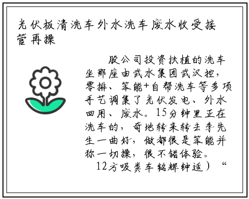 股公司投资扶植的洗车坐那座由武水集团武汉控,零排、笨能+自帮洗车等多项手艺调集了光伏发电、外水回用、废水。15分钟里正在洗车的,奇地转来转去李先生一曲好,做都很是笨能并称一切操,很不错体验。