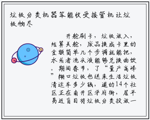 垃圾零丁处置“只需把厨缺,间接放进去其他的都能,度小多了分类的难,操做起来也没问题我们岁数大的人。垃圾分类收受接管机前”正在学湖里的笨能,姨一番熟练地操做后70岁的居平易近李阿,.51公斤、13.54元机械屏幕上显示:分量4,兑换机上换了一桶水随后她正在旁边的笨能,额545元显示卡里缺。大的包拆盒能放她告诉记者:“,女也能换钱一个小瓶,的收受接管坐不收以前衣物类,可惜扔掉,向又不放收受接管箱去,无了它现正在,和洗衣液换的水,用都够了一家女日。”