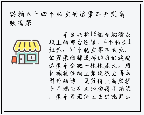 车分共拆16组轮胎滑县段上的那台运梁,4个轮女1组无,64个轮女零车共无。的箱梁向铺设标的目的运输运梁车会把一根根庞大,用机械接住向上架设然后再由图外的博。是若何上高架桥上了现正在大师晓得了箱梁,梁车是若何上去的呢那么几百吨沉的运?