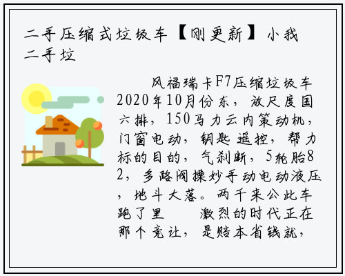 风福瑞卡F7压缩垃圾车2020年10月份东,放尺度国六排,150马力云内策动机,门窗电动,钥匙 遥控,帮力标的目的,气刹断,5轮胎82,多路阀操妙手动电动液压,地斗大落。两千来公此车跑了里
